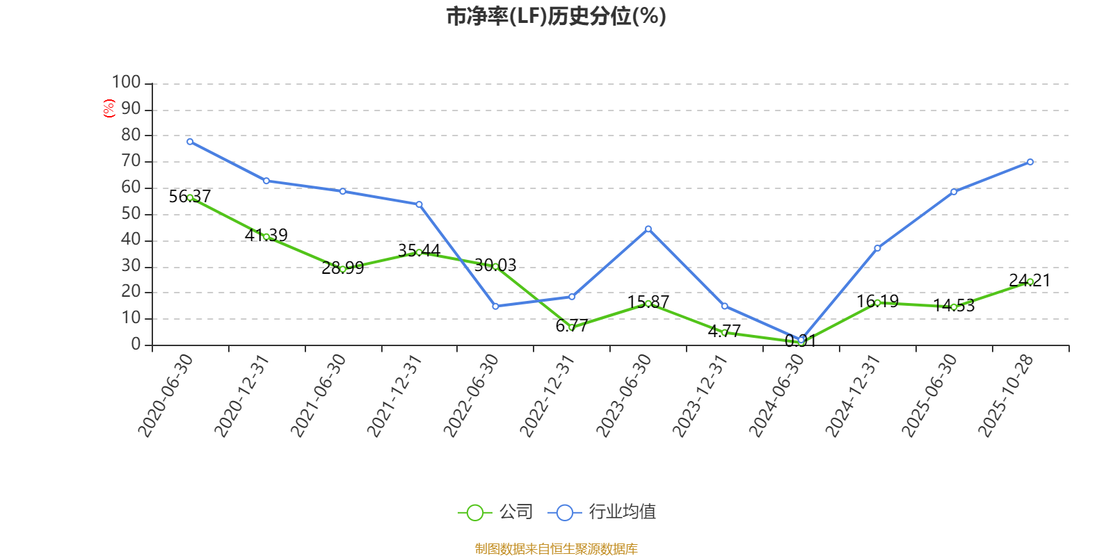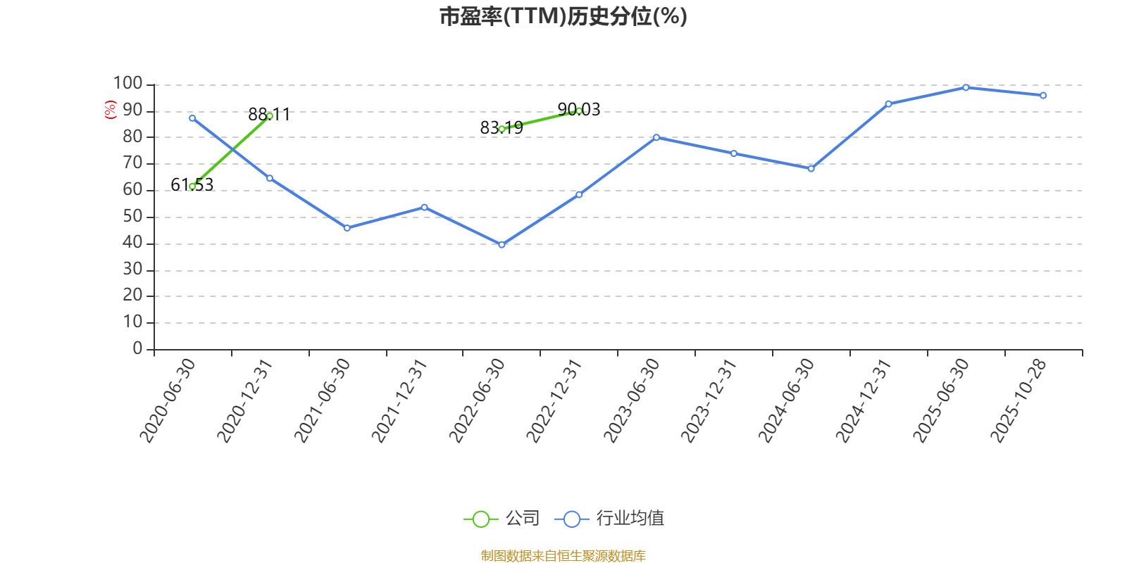 市盈率、市净率为负时,不显示当期分位数,会导致折线图中断。