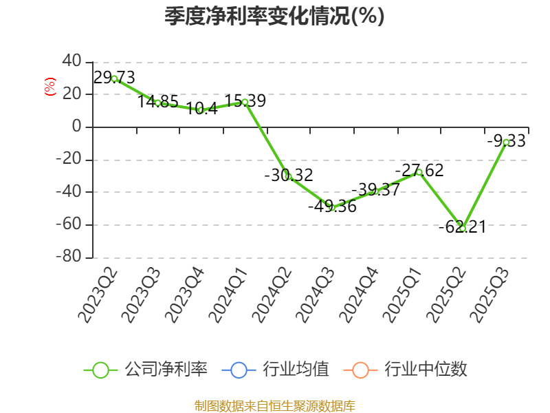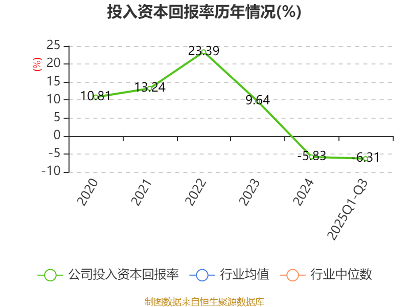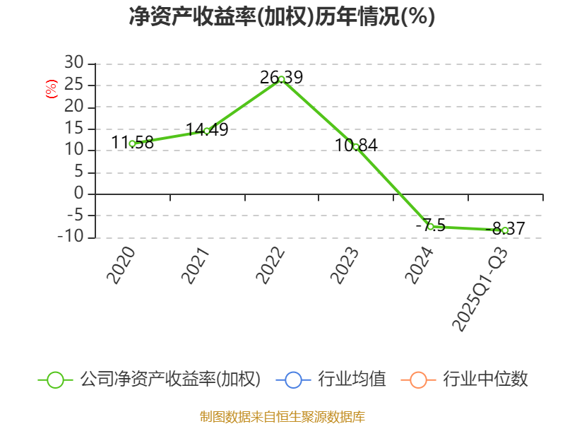 盈利能力方面, 2025年前三季度公司加权平均净资产收益率为-8.37%,同比下降4.09个百分点。公司2025年前三季度投入资本回报率为-6.31%,较上年同期下降3.39个百分点。
