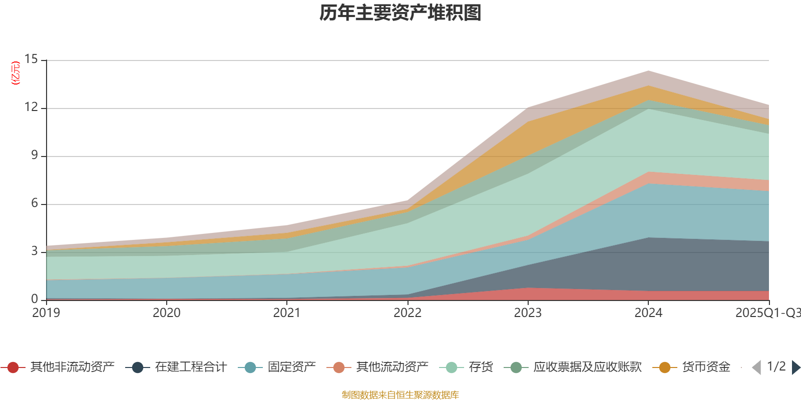 资产重大变化方面,截至2025年三季度末,公司存货较上年末减少26.23%,占公司总资产比重下降3.62个百分点;货币资金较上年末减少58%,占公司总资产比重下降3.2个百分点;在建工程合计较上年末减少7.05%,占公司总资产比重上升2.18个百分点;固定资产较上年末减少7.26%,占公司总资产比重上升2.14个百分点。