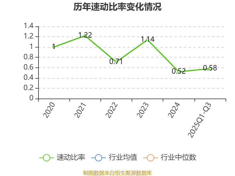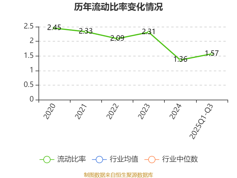 2025年前三季度,公司流动比率为1.57,速动比率为0.58。