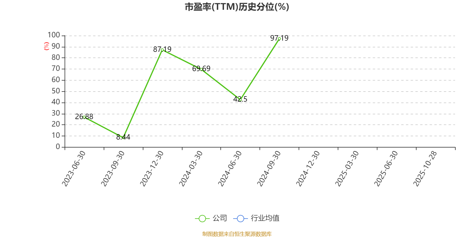市盈率、市净率为负时,不显示当期分位数,会导致折线图中断。