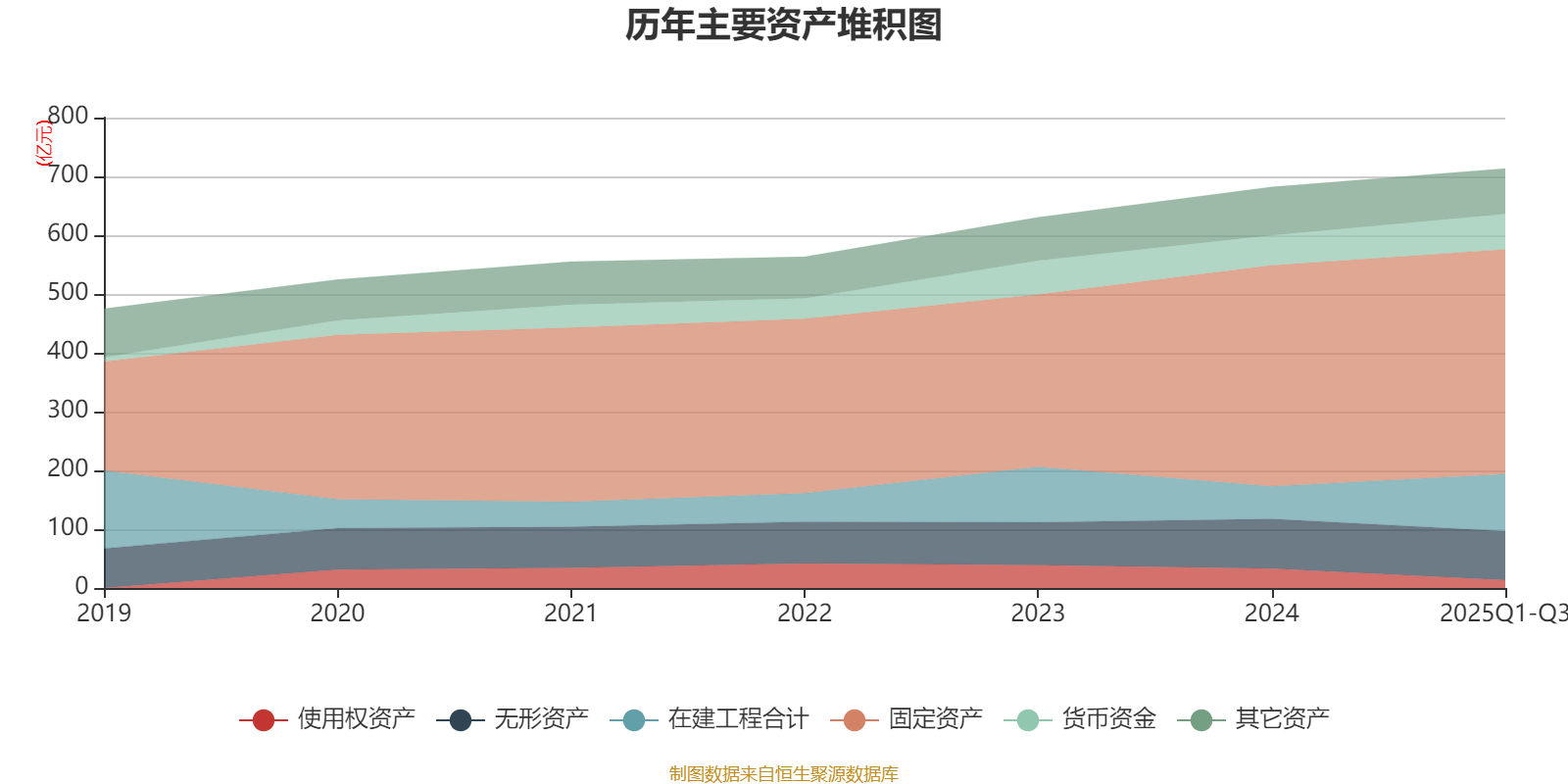 资产重大变化方面,截至2025年三季度末,公司在建工程合计较上年末增加75.51%,占公司总资产比重上升5.51个百分点;使用权资产较上年末减少59.53%,占公司总资产比重下降2.97个百分点;固定资产较上年末增加1.66%,占公司总资产比重下降1.53个百分点;货币资金较上年末增加17.19%,占公司总资产比重上升0.91个百分点。