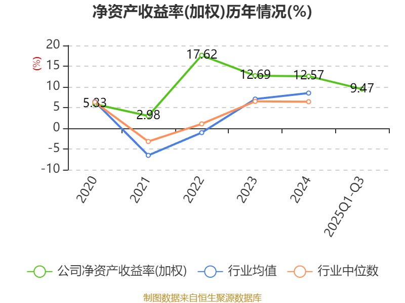 盈利能力方面, 2025年前三季度公司加权平均净资产收益率为9.47%,同比下降0.95个百分点。公司2025年前三季度投入资本回报率为6.81%,较上年同期下降0.77个百分点。
