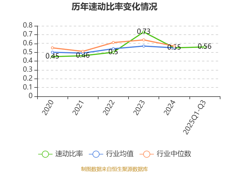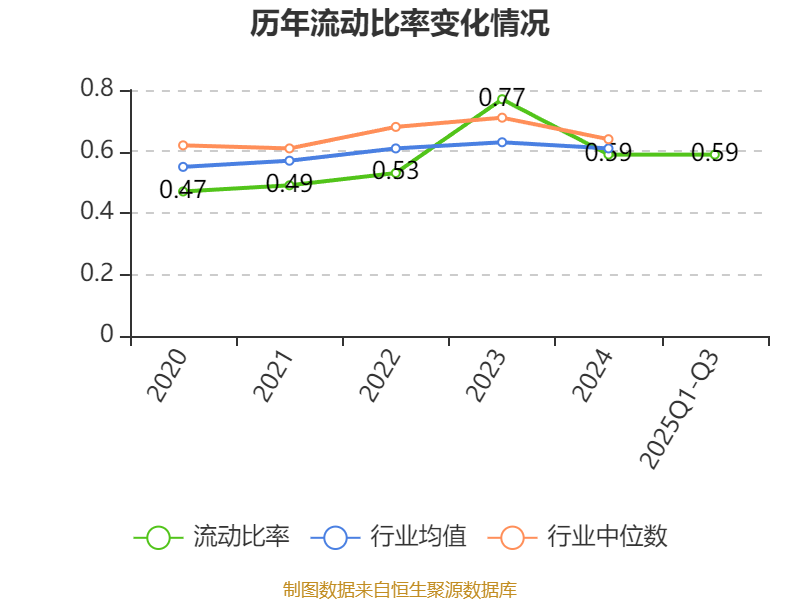 2025年前三季度,公司流动比率为0.59,速动比率为0.56。