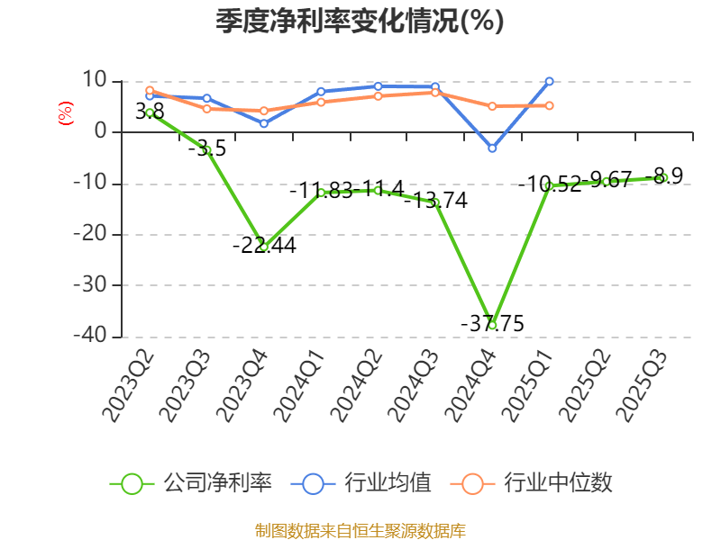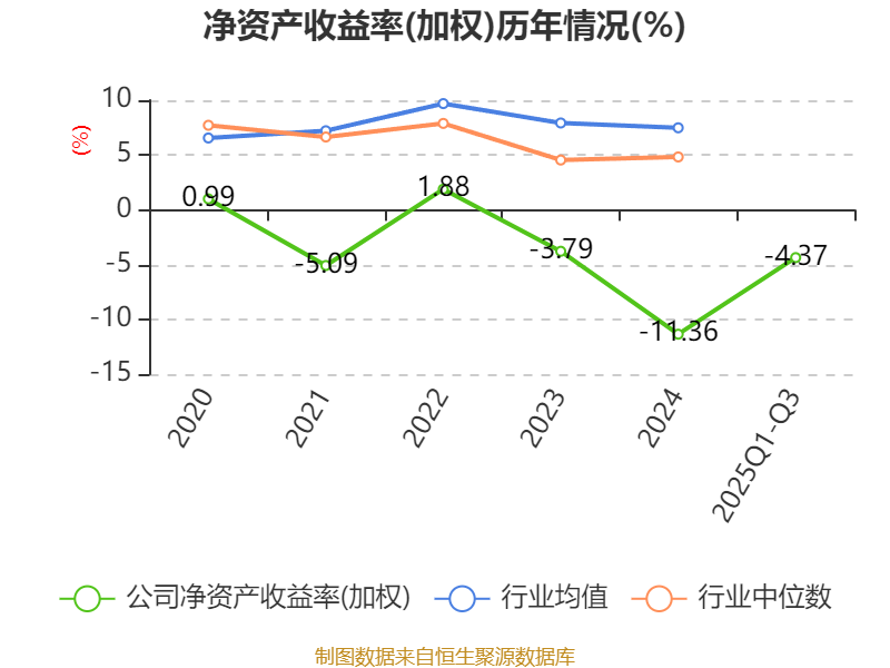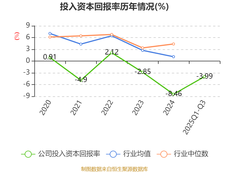 盈利能力方面, 2025年前三季度公司加权平均净资产收益率为-4.37%,同比上升0.83个百分点。公司2025年前三季度投入资本回报率为-3.99%,较上年同期上升0.03个百分点。