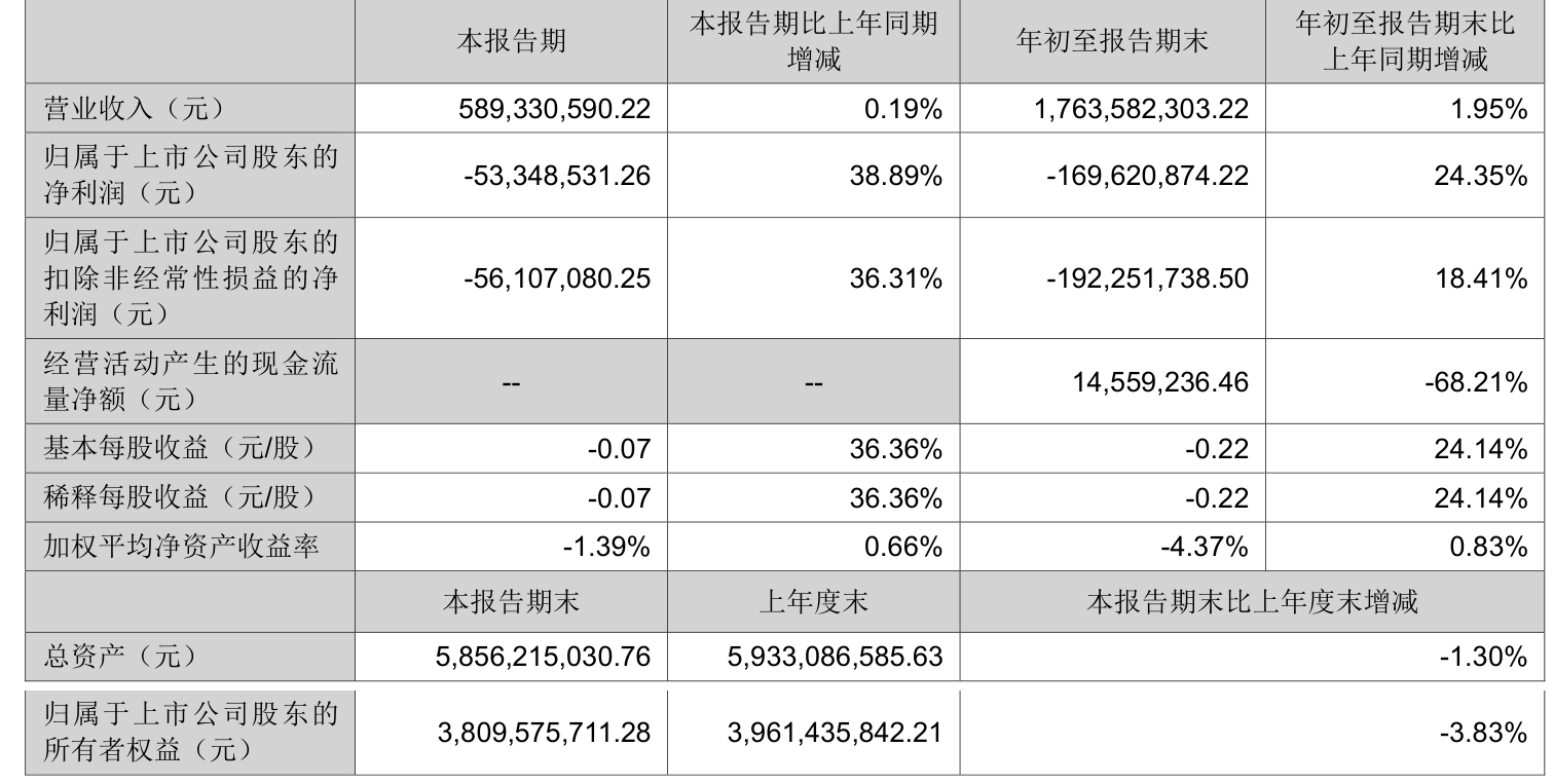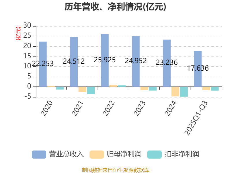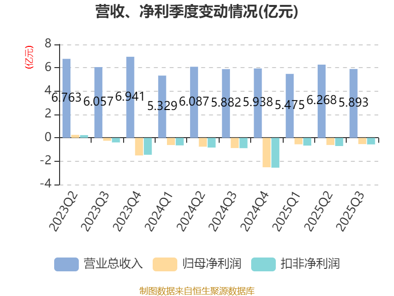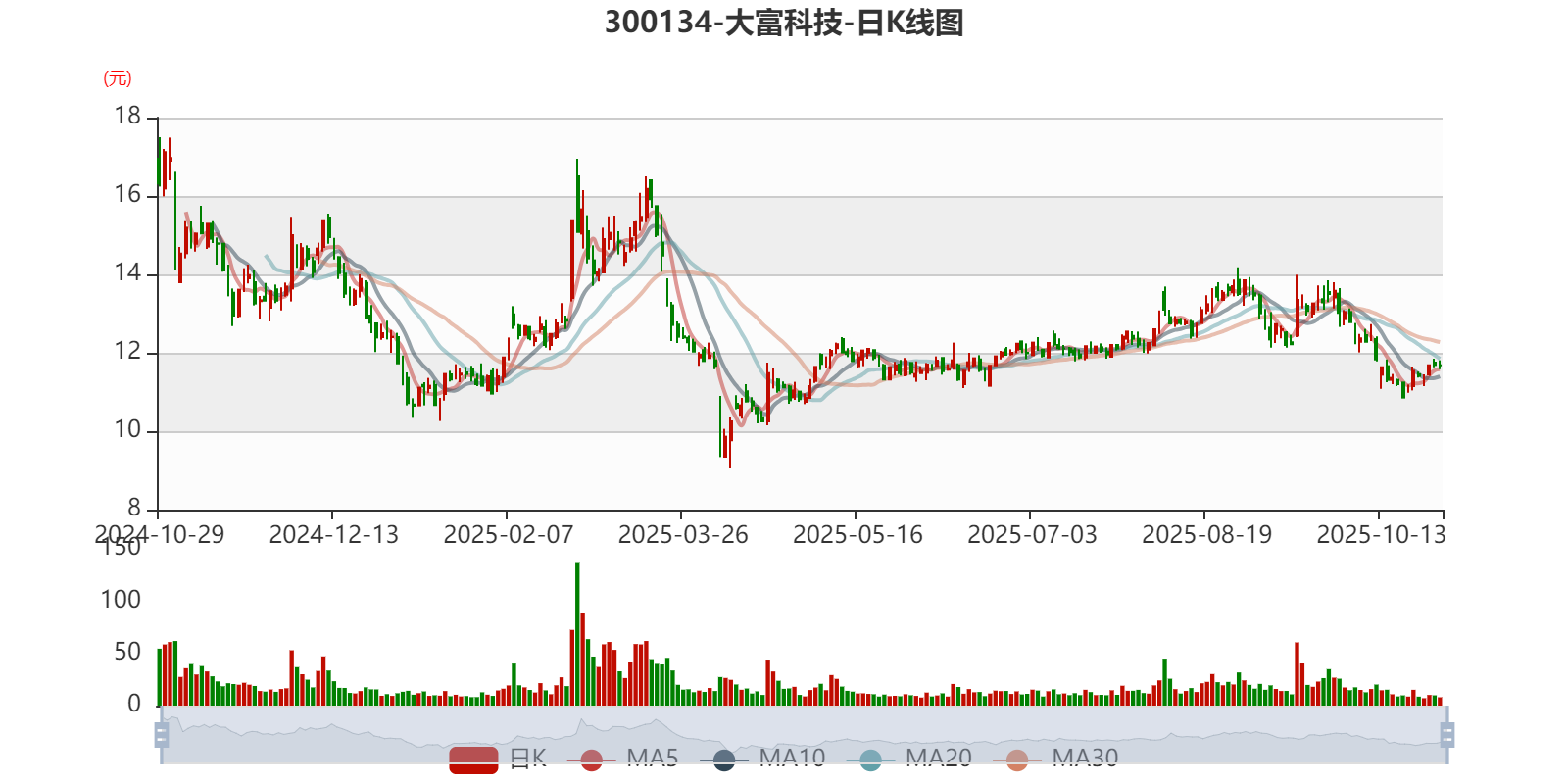 中证智能财讯大富科技(300134)10月29日披露2025年第三季度报告。前三季度公司实现营业总收入17.64亿元,同比增长1.95%;归母净利润亏损1.7亿元,上年同期亏损2.24亿元;扣非净利润亏损1.92亿元,上年同期亏损2.36亿元;经营活动产生的现金流量净额为1455.92万元,同比下降68.21%;报告期内,大富科技基本每股收益为-0.22元,加权平均净资产收益率为-4.37%。