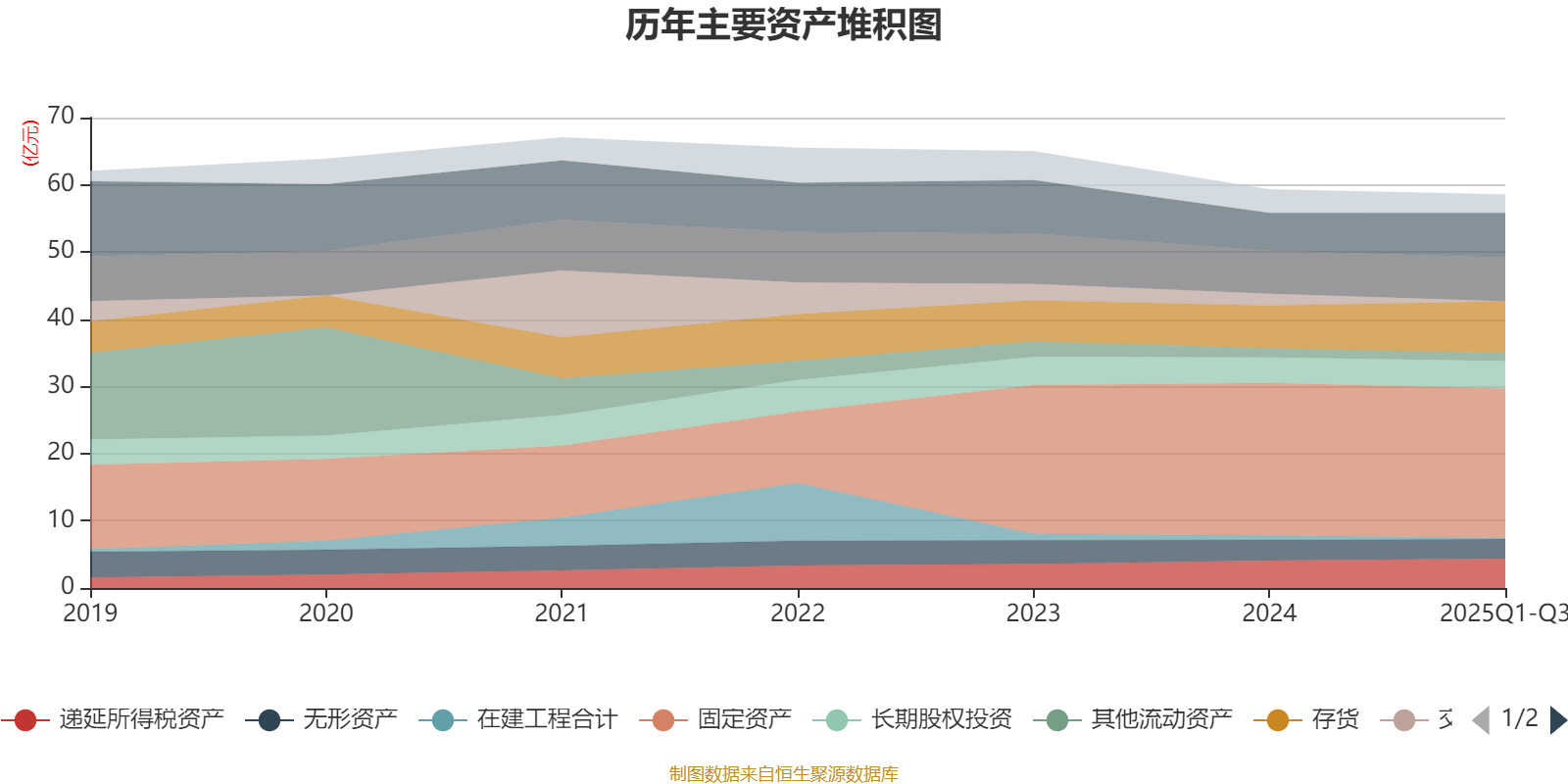 资产重大变化方面,截至2025年三季度末,公司交易性金融资产合计较上年末减少99.37%,占公司总资产比重下降2.93个百分点;存货较上年末增加21.1%,占公司总资产比重上升2.43个百分点;货币资金较上年末增加18.45%,占公司总资产比重上升1.9个百分点;在建工程合计较上年末减少71.79%,占公司总资产比重下降0.83个百分点。
