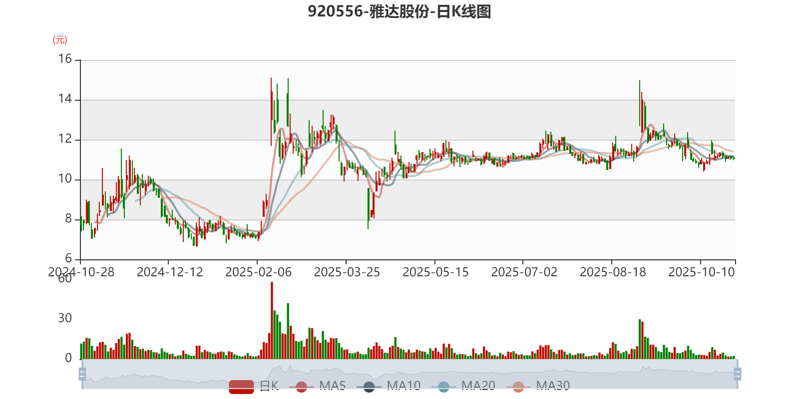 中证智能财讯雅达股份(920556)10月28日披露2025年第三季度报告。前三季度公司实现营业总收入2.48亿元,同比增长11.49%;归母净利润2026.88万元,同比增长10.34%;扣非净利润1642.98万元,同比增长5.09%;经营活动产生的现金流量净额为1657.16万元,上年同期为-123.21万元;报告期内,雅达股份基本每股收益为0.13元,加权平均净资产收益率为3.91%。