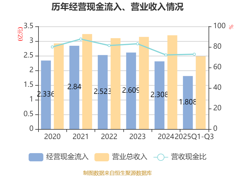 2025年前三季度,公司流动比率为4.48,速动比率为3.42。