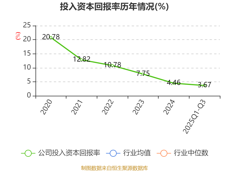 盈利能力方面, 2025年前三季度公司加权平均净资产收益率为3.91%,同比上升0.42个百分点。公司2025年前三季度投入资本回报率为3.67%,较上年同期上升0.35个百分点。