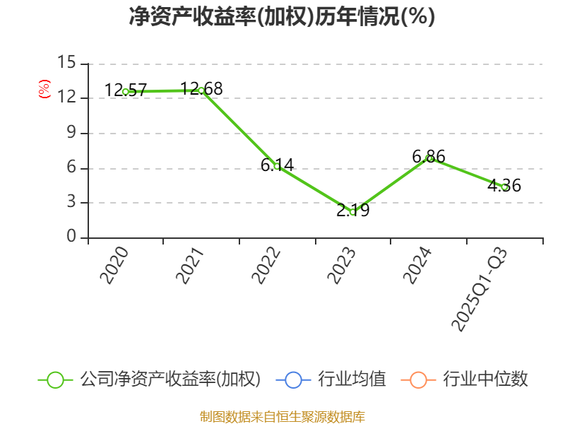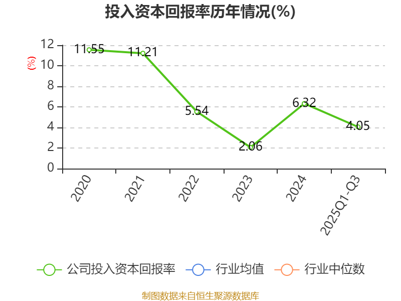 盈利能力方面, 2025年前三季度公司加权平均净资产收益率为4.36%,同比下降1.99个百分点。公司2025年前三季度投入资本回报率为4.05%,较上年同期下降1.71个百分点。