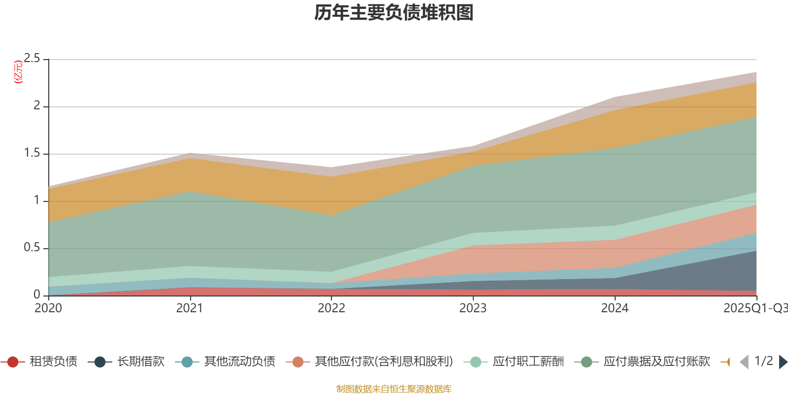 负债重大变化方面,截至2025年三季度末,公司长期借款较上年末增加264.96%,占公司总资产比重上升4.87个百分点;其他流动负债较上年末增加76.99%,占公司总资产比重上升1.23个百分点;应付票据及应付账款较上年末减少2.87%,占公司总资产比重下降1.23个百分点;短期借款较上年末减少8.66%,占公司总资产比重下降0.97个百分点。