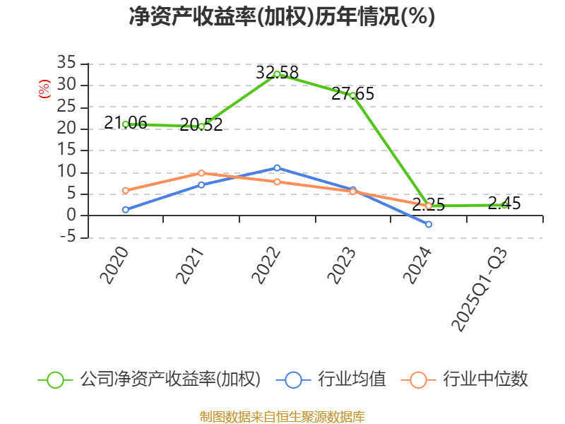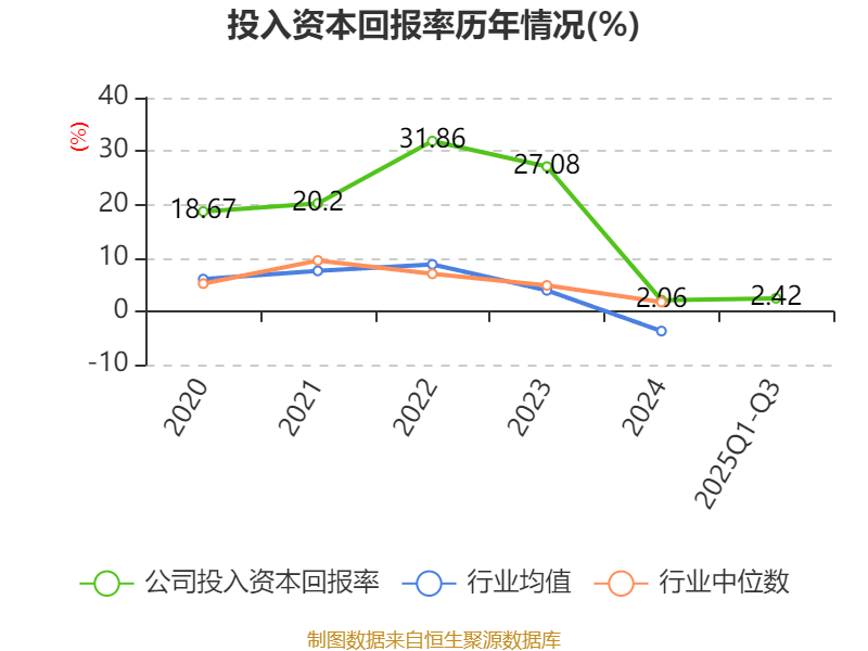 盈利能力方面, 2025年前三季度公司加权平均净资产收益率为2.45%,同比下降1.85个百分点。公司2025年前三季度投入资本回报率为2.42%,较上年同期下降1.86个百分点。