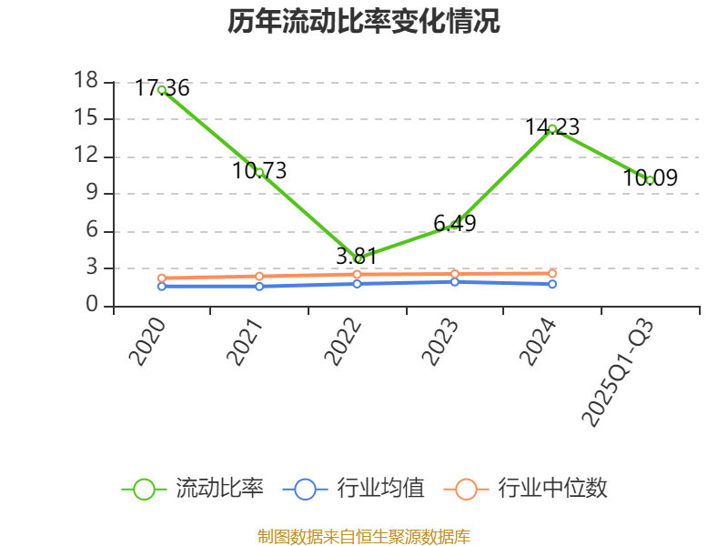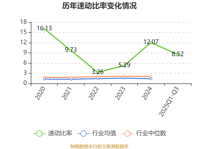 2025年前三季度,公司流动比率为10.09,速动比率为8.52。