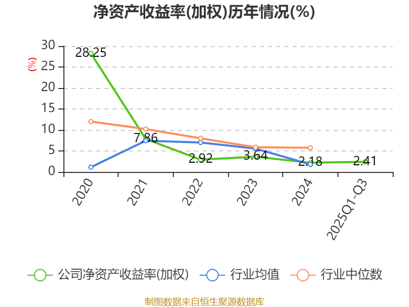 盈利能力方面, 2025年前三季度公司加权平均净资产收益率为2.41%,同比上升0.79个百分点。公司2025年前三季度投入资本回报率为1.14%,较上年同期上升0.64个百分点。