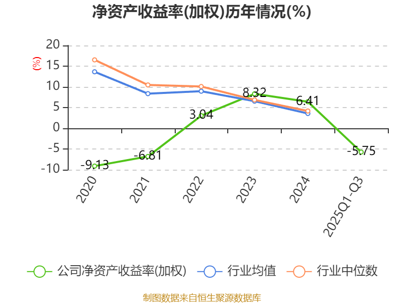 盈利能力方面, 2025年前三季度公司加权平均净资产收益率为-5.75%,同比下降12.78个百分点。公司2025年前三季度投入资本回报率为-2.67%,较上年同期下降7.07个百分点。