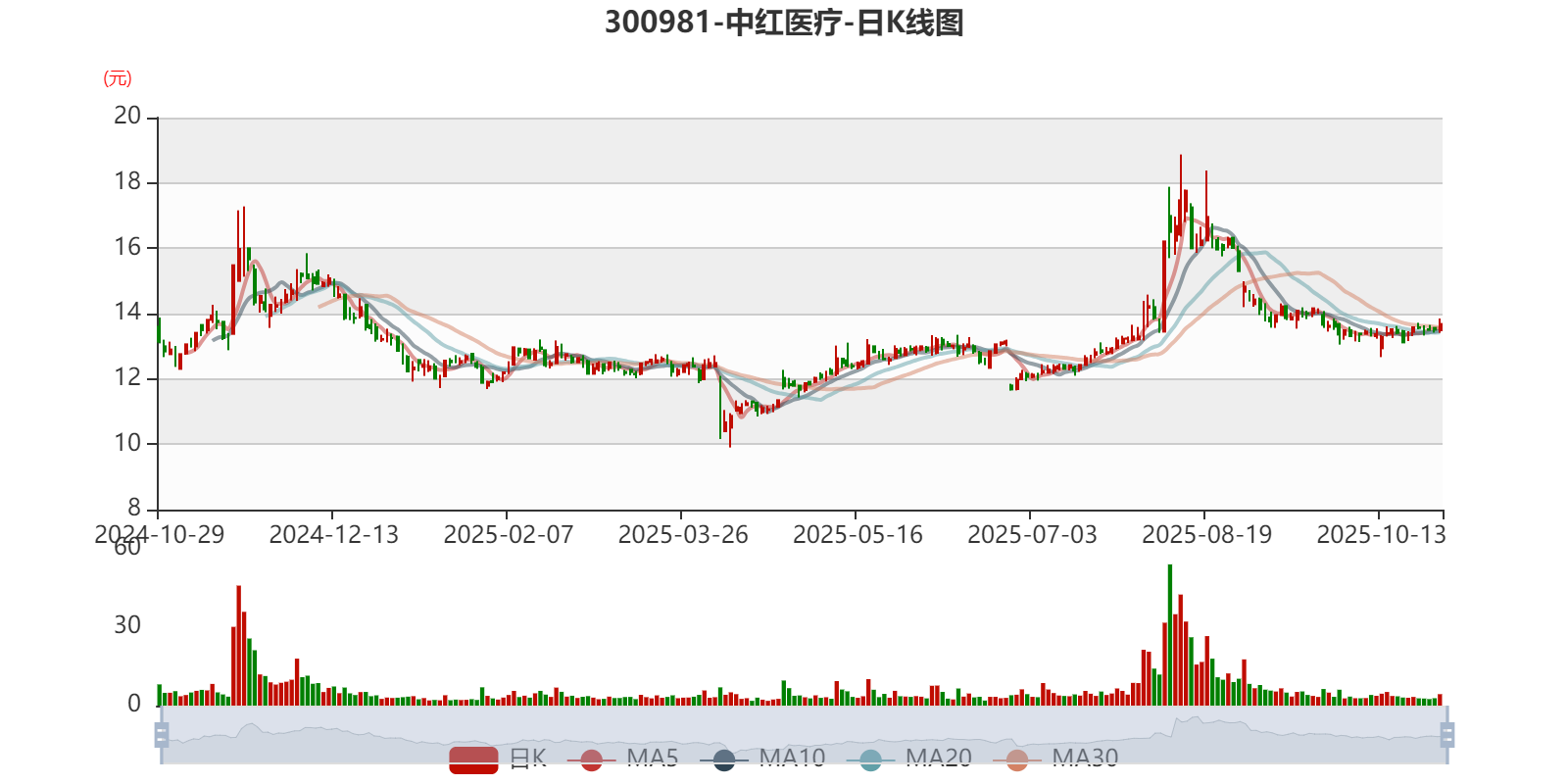 以10月28日收盘价计算,中红医疗目前市盈率(TTM)约为-40.36倍,市净率(LF)约1.09倍,市销率(TTM)约2.36倍。