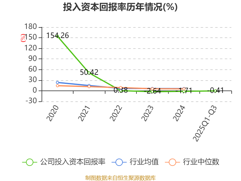 盈利能力方面, 2025年前三季度公司加权平均净资产收益率为-0.13%,同比下降1.02个百分点。公司2025年前三季度投入资本回报率为-0.41%,较上年同期下降0.78个百分点。