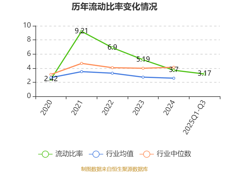 2025年前三季度,公司流动比率为3.17,速动比率为2.81。