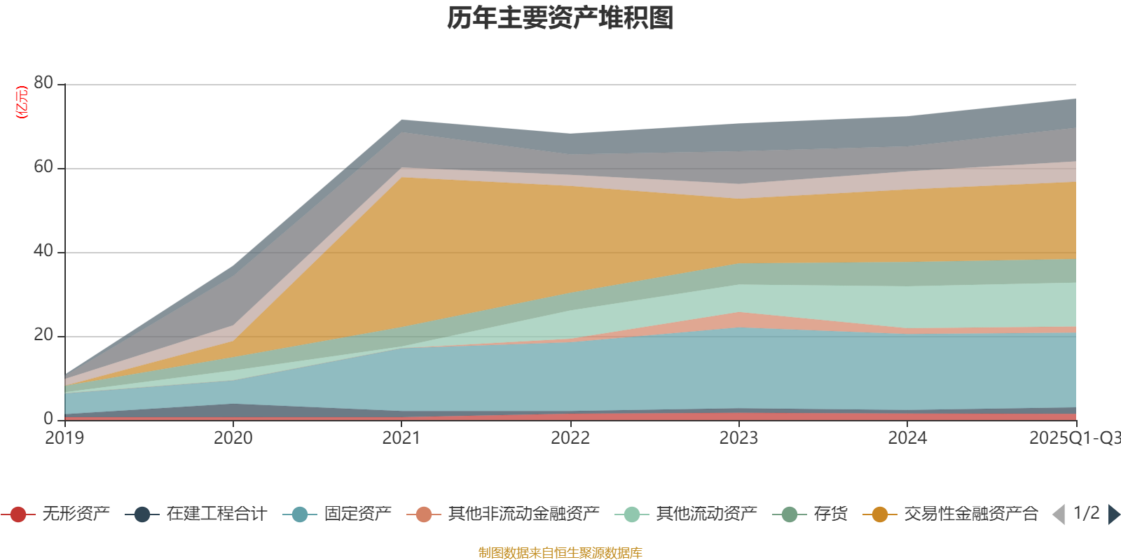 资产重大变化方面,截至2025年三季度末,公司货币资金较上年末增加34.26%,占公司总资产比重上升2.22个百分点;一年内到期的非流动资产较上年末减少100%,占公司总资产比重下降2.18个百分点;固定资产较上年末减少1.6%,占公司总资产比重下降1.76个百分点;其他非流动资产较上年末增加80.76%,占公司总资产比重上升1.06个百分点。