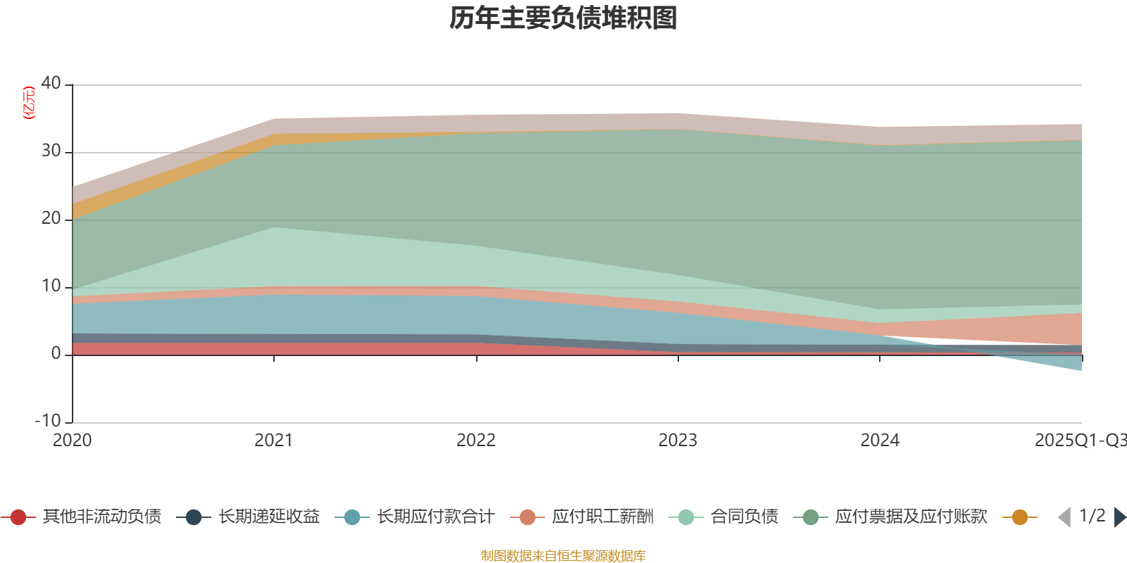 负债重大变化方面,截至2025年三季度末,公司长期应付款合计较上年末减少271.25%,占公司总资产比重下降2.31个百分点;应付职工薪酬较上年末增加157.22%,占公司总资产比重上升1.75个百分点;合同负债较上年末减少36.82%,占公司总资产比重下降0.46个百分点;预计负债较上年末减少90.7%,占公司总资产比重下降0.1个百分点。