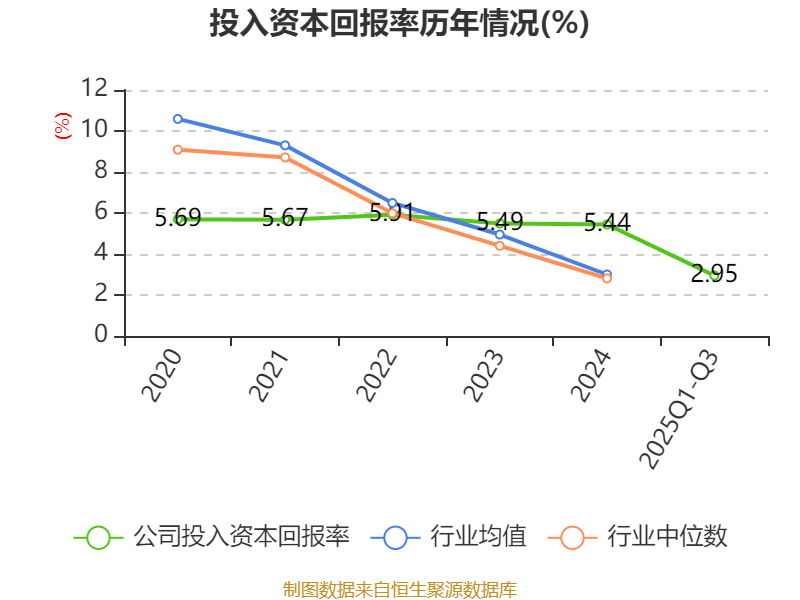 盈利能力方面, 2025年前三季度公司加权平均净资产收益率为3.21%,同比下降2.01个百分点。公司2025年前三季度投入资本回报率为2.95%,较上年同期下降1.87个百分点。