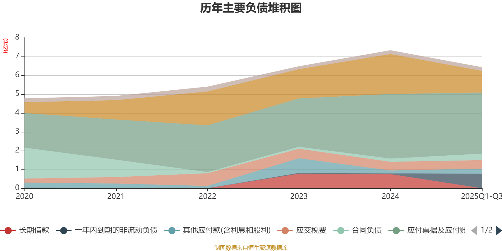 负债重大变化方面,截至2025年三季度末,公司短期借款较上年末减少45.88%,占公司总资产比重下降6.08个百分点;一年内到期的非流动负债较上年末增加1994.25%,占公司总资产比重上升5.14个百分点;长期借款较上年末减少100%,占公司总资产比重下降4.98个百分点;合同负债较上年末增加103.75%,占公司总资产比重上升1.29个百分点。