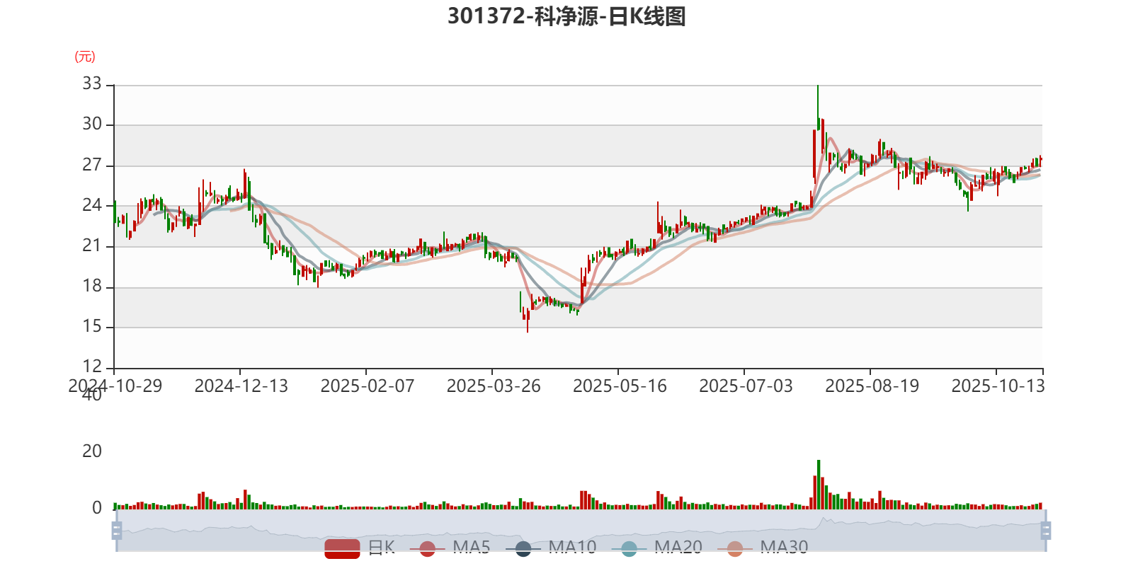 以10月28日收盘价计算,科净源目前市盈率(TTM)约为-24.78倍,市净率(LF)约2.39倍,市销率(TTM)约7.26倍。