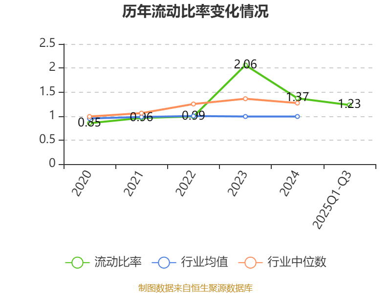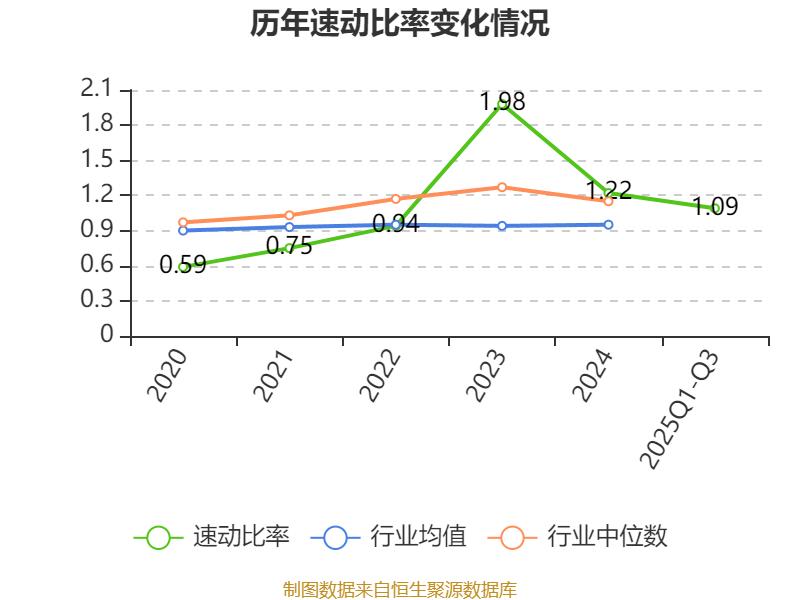 2025年前三季度,公司流动比率为1.23,速动比率为1.09。