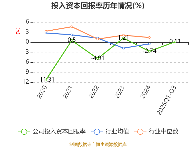 盈利能力方面, 2025年前三季度公司加权平均净资产收益率为0.04%,同比下降0.64个百分点。公司2025年前三季度投入资本回报率为0.11%,较上年同期下降1.09个百分点。