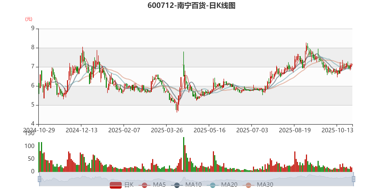 以10月28日收盘价计算,南宁百货目前市盈率(TTM)约为-105.18倍,市净率(LF)约4.88倍,市销率(TTM)约6.69倍。
