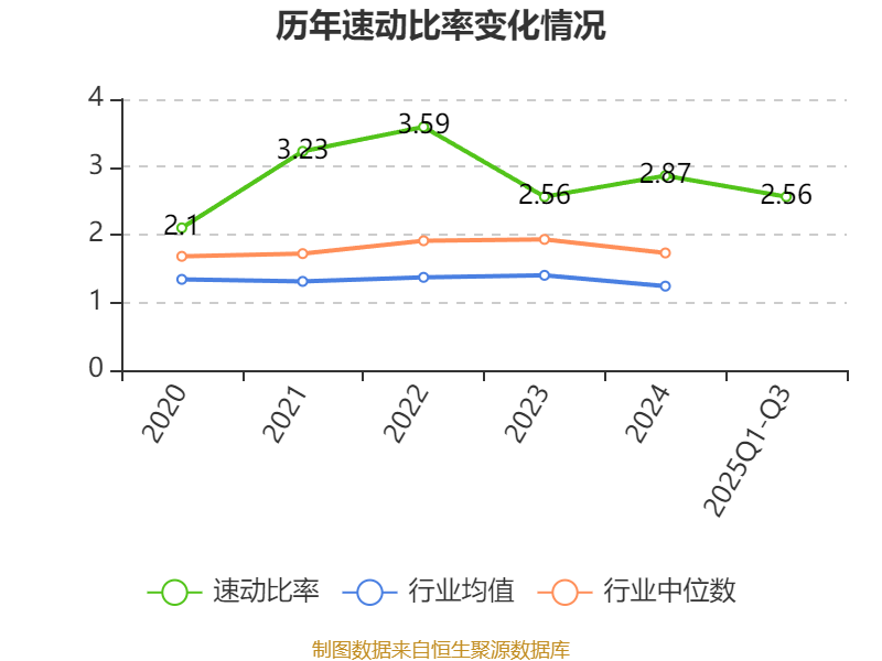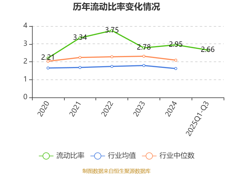 2025年前三季度,公司流动比率为2.66,速动比率为2.56。