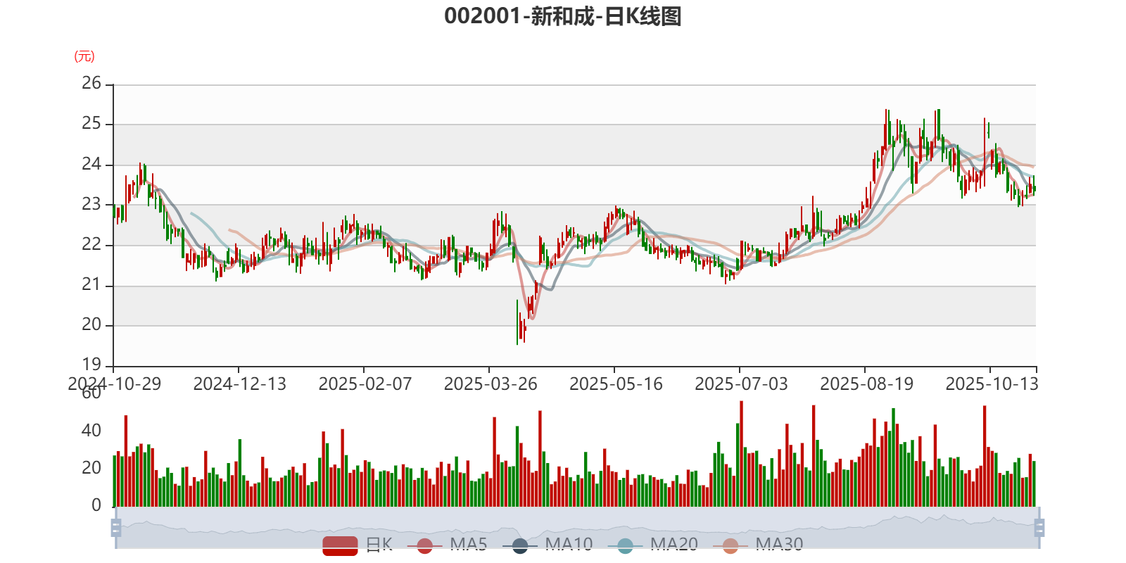 中证智能财讯新和成(002001)10月29日披露2025年第三季度报告。前三季度公司实现营业总收入166.42亿元,同比增长5.45%;归母净利润53.21亿元,同比增长33.37%;扣非净利润53.33亿元,同比增长37.37%;经营活动产生的现金流量净额为56.42亿元,同比增长23.28%;报告期内,新和成基本每股收益为1.73元,加权平均净资产收益率为17.32%。