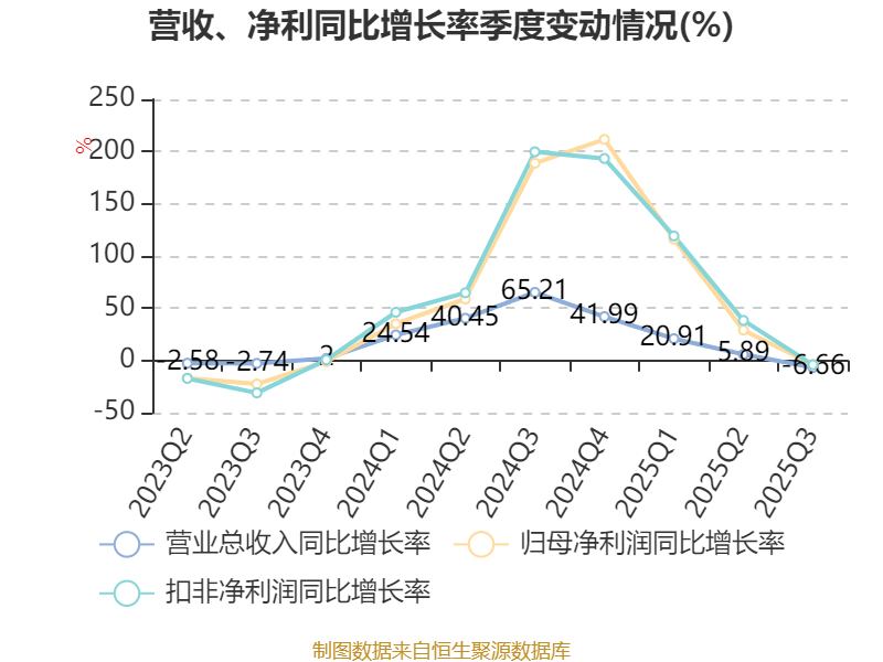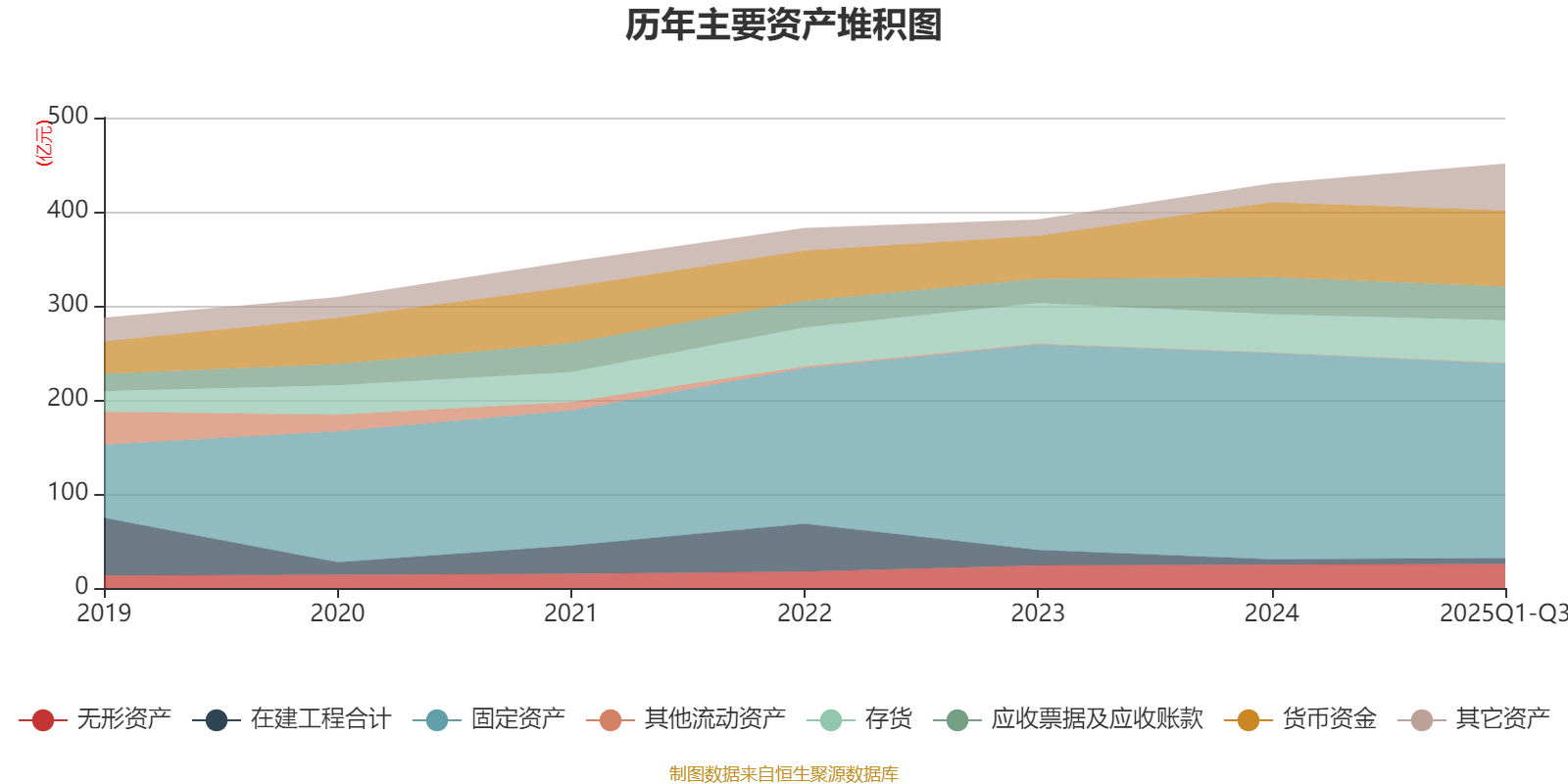 资产重大变化方面,截至2025年三季度末,公司固定资产较上年末减少5.67%,占公司总资产比重下降5.13个百分点;交易性金融资产合计较上年末增加264509.38%,占公司总资产比重上升4.37个百分点;其他非流动资产较上年末增加468.92%,占公司总资产比重上升1.64个百分点;应收票据及应收账款较上年末减少8.31%,占公司总资产比重下降1.16个百分点。