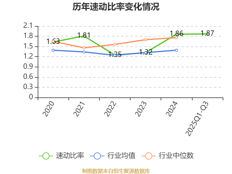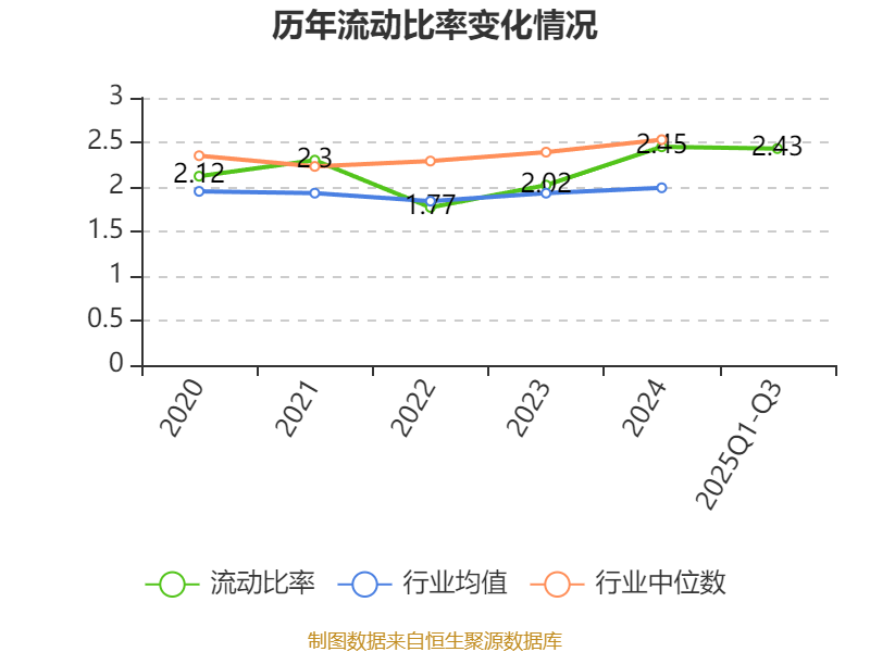 2025年前三季度,公司流动比率为2.43,速动比率为1.87。