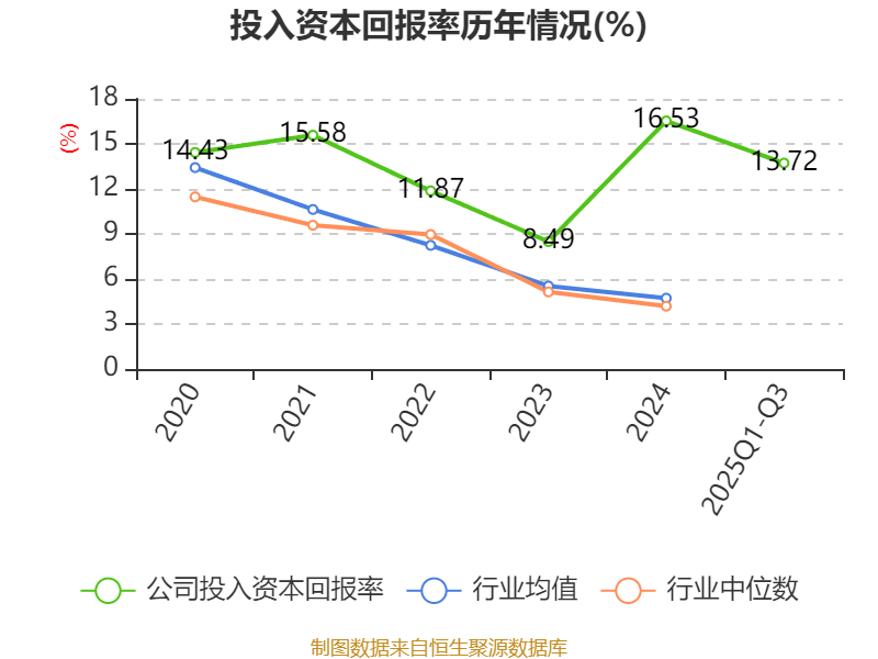 盈利能力方面, 2025年前三季度公司加权平均净资产收益率为17.32%,同比上升2.1个百分点。公司2025年前三季度投入资本回报率为13.72%,较上年同期上升2.28个百分点。