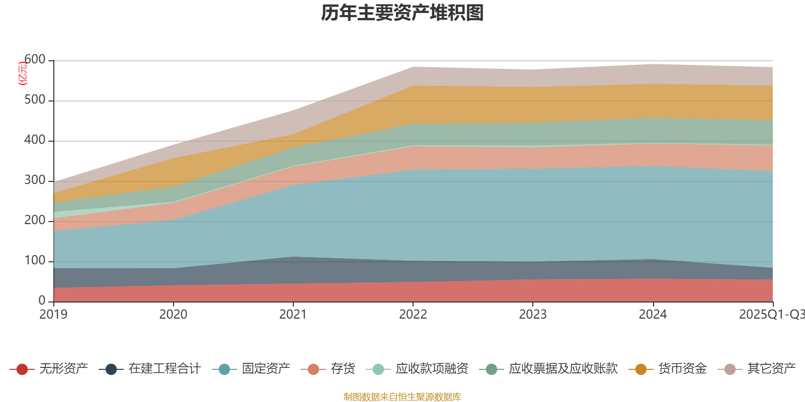 资产重大变化方面,截至2025年三季度末,公司在建工程合计较上年末减少39.51%,占公司总资产比重下降3.16个百分点;固定资产较上年末增加3.64%,占公司总资产比重上升1.98个百分点;存货较上年末增加13.99%,占公司总资产比重上升1.46个百分点;其他非流动资产较上年末减少53.26%,占公司总资产比重下降0.99个百分点。