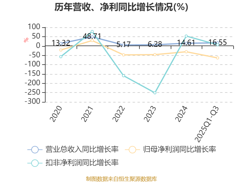 2025年前三季度,公司经营活动现金流净额为16.6亿元,同比下降24.45%;筹资活动现金流净额4.05亿元,同比增加2.83亿元;投资活动现金流净额-10.84亿元,上年同期为-27.22亿元。