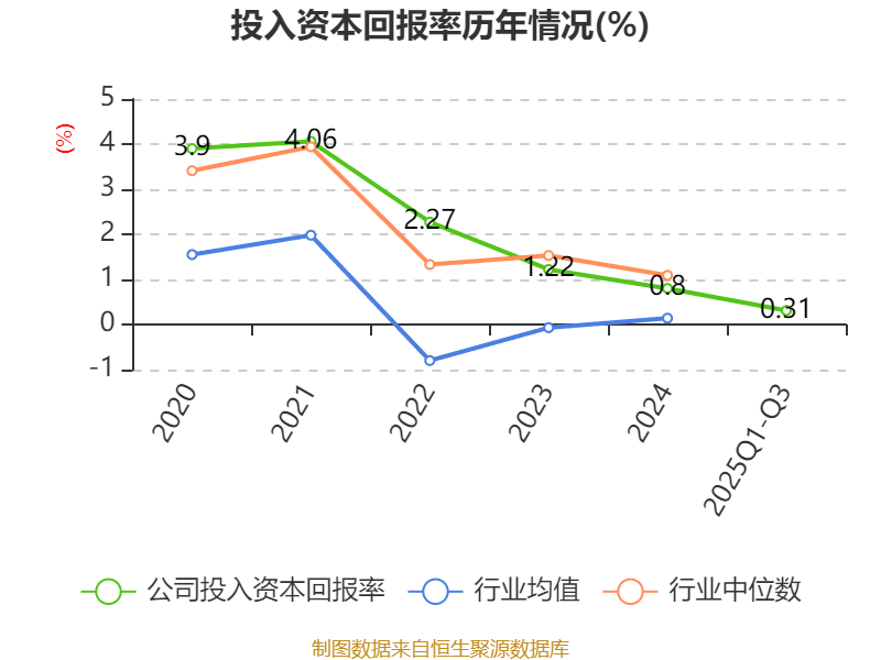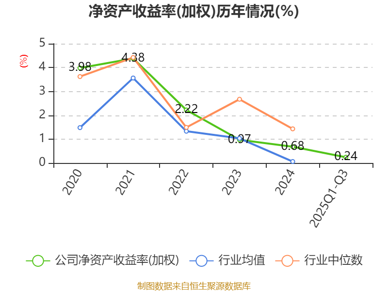 盈利能力方面, 2025年前三季度公司加权平均净资产收益率为0.24%,同比下降0.42个百分点。公司2025年前三季度投入资本回报率为0.31%,较上年同期下降0.36个百分点。