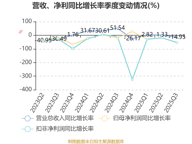负债重大变化方面,截至2025年三季度末,公司短期借款较上年末增加46.57%,占公司总资产比重上升4个百分点;应付票据及应付账款较上年末减少0.75%,占公司总资产比重下降1.19个百分点;其他应付款(含利息和股利)较上年末增加22.37%,占公司总资产比重上升1个百分点;应付职工薪酬较上年末减少24.96%,占公司总资产比重下降0.54个百分点。
