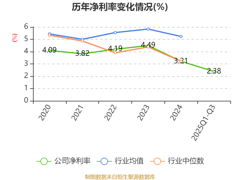 盈利能力方面, 2025年前三季度公司加权平均净资产收益率为5.04%,同比下降2.87个百分点。公司2025年前三季度投入资本回报率为4.32%,较上年同期下降3.03个百分点。