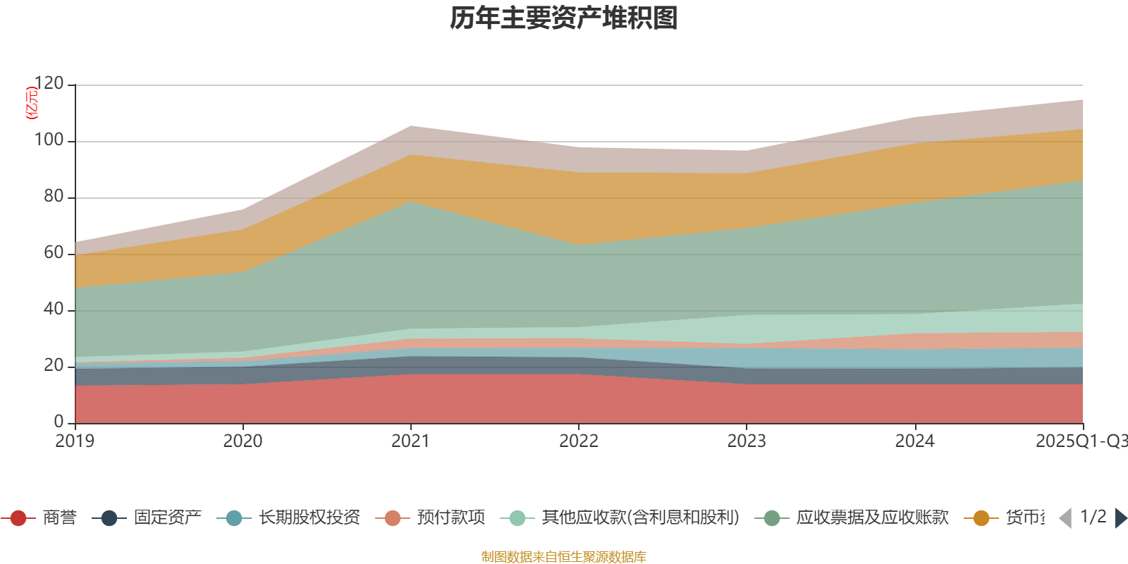 资产重大变化方面,截至2025年三季度末,公司货币资金较上年末减少13.6%,占公司总资产比重下降3.54个百分点;其他应收款(含利息和股利)较上年末增加47.1%,占公司总资产比重上升2.46个百分点;应收票据及应收账款较上年末增加10.83%,占公司总资产比重上升1.77个百分点;商誉较上年末没有变化,占公司总资产比重下降0.68个百分点。
