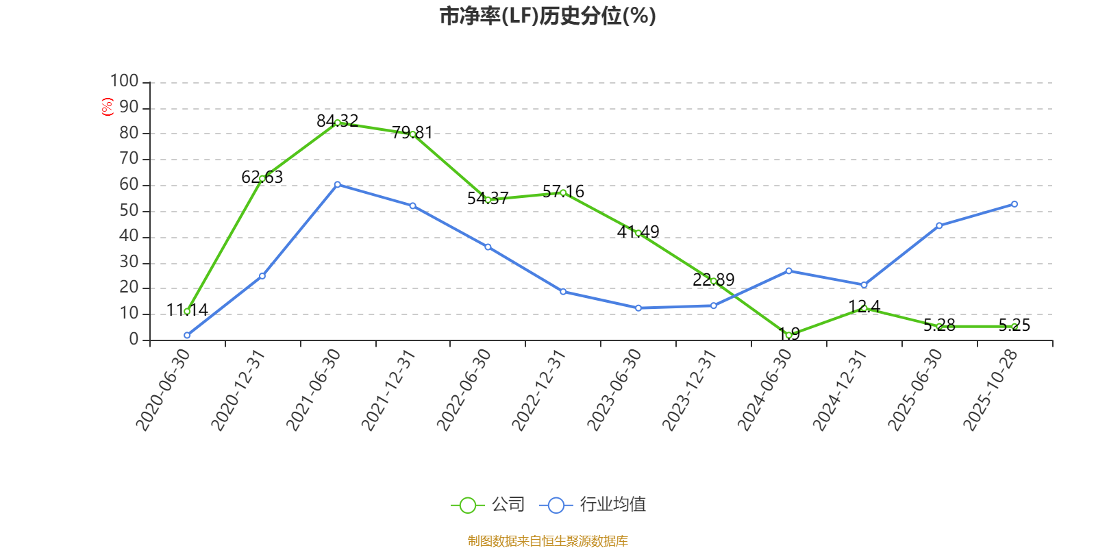 市盈率、市净率为负时,不显示当期分位数,会导致折线图中断。