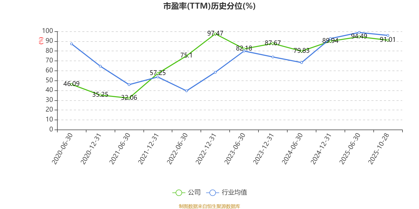 市盈率、市净率为负时,不显示当期分位数,会导致折线图中断。