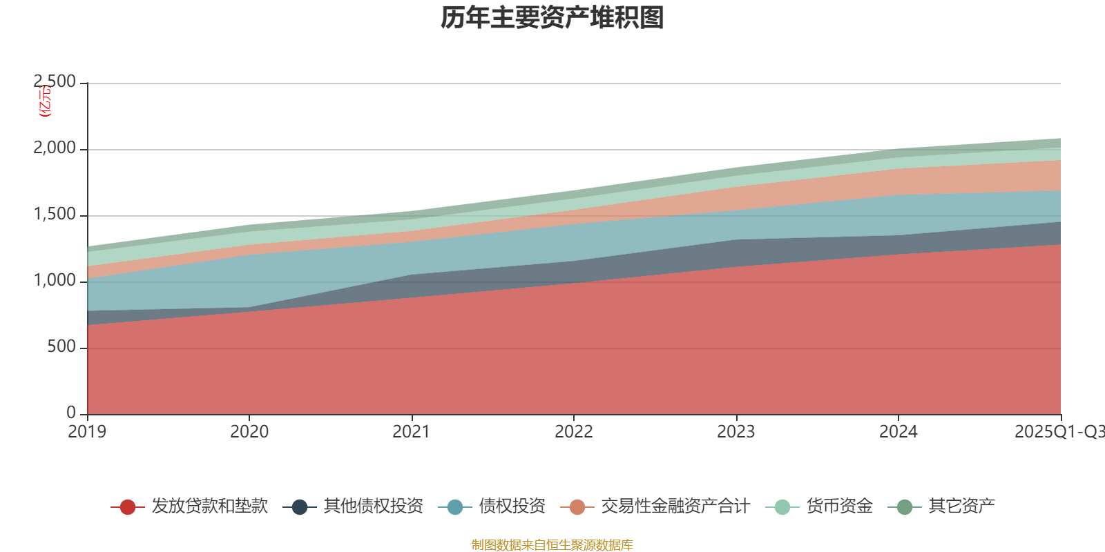 资产重大变化方面,截至2025年三季度末,公司债权投资较上年末减少22.82%,占公司总资产比重下降3.92个百分点;发放贷款和垫款较上年末增加6.22%,占公司总资产比重上升1.34个百分点;交易性金融资产合计较上年末增加16.59%,占公司总资产比重上升1.2个百分点;其他债权投资较上年末增加18.96%,占公司总资产比重上升1.04个百分点。