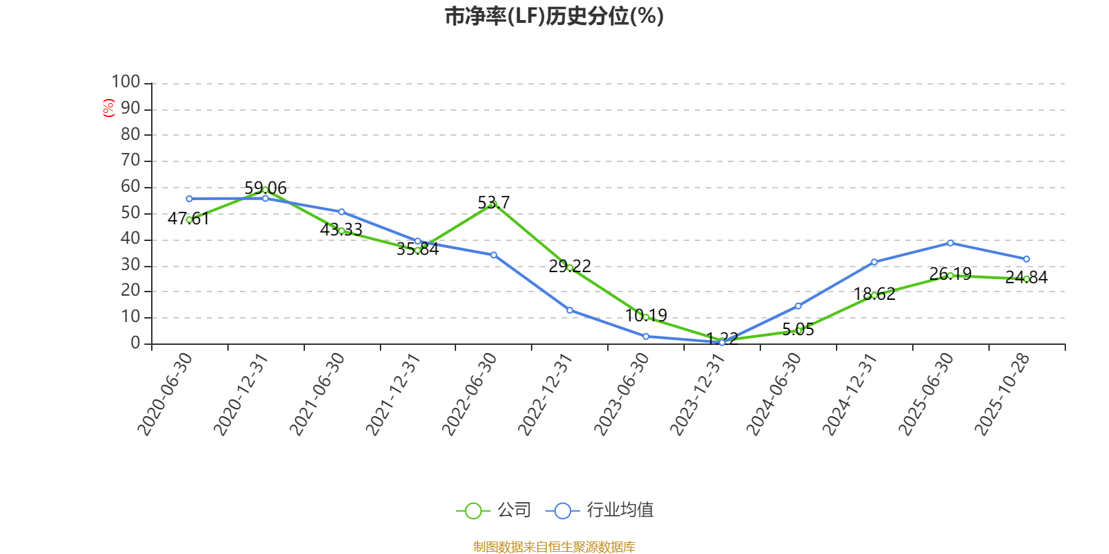 市盈率、市净率为负时,不显示当期分位数,会导致折线图中断。