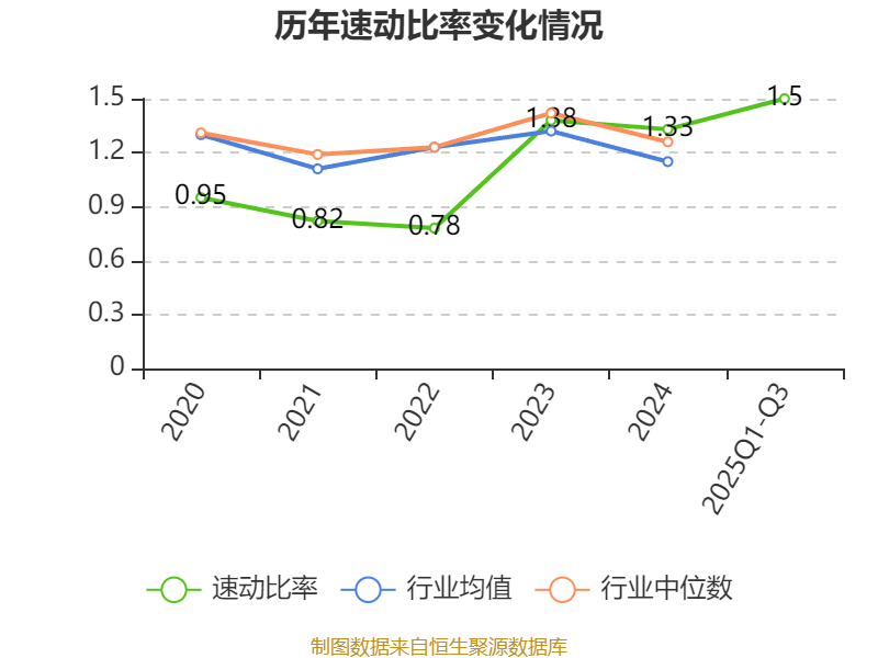 2025年前三季度,公司流动比率为1.91,速动比率为1.5。