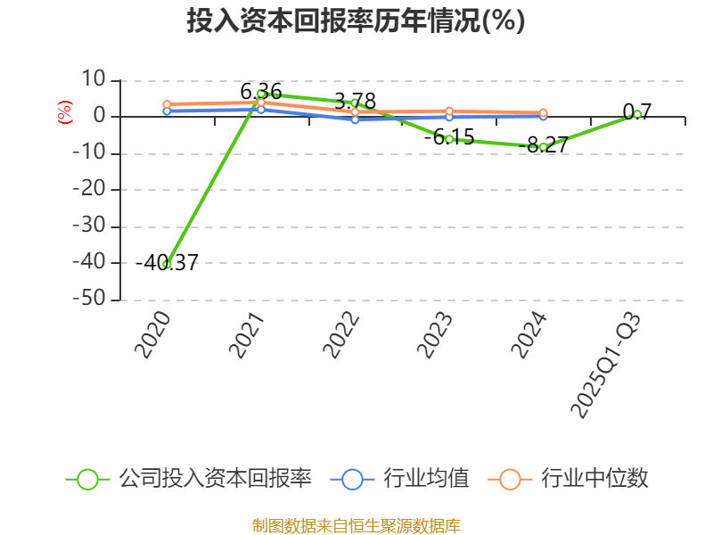 盈利能力方面, 2025年前三季度公司加权平均净资产收益率为1%,同比上升5.46个百分点。公司2025年前三季度投入资本回报率为0.7%,较上年同期上升4.78个百分点。