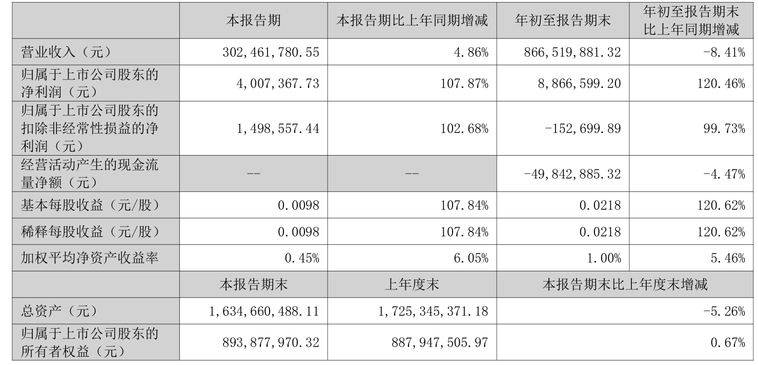 中证智能财讯雷曼光电(300162)10月29日披露2025年第三季度报告。前三季度公司实现营业总收入8.67亿元,同比下降8.41%;归母净利润886.66万元,同比扭亏;扣非净利润亏损15.27万元,上年同期亏损5661.64万元;经营活动产生的现金流量净额为-4984.29万元,上年同期为-4770.91万元;报告期内,雷曼光电基本每股收益为0.0218元,加权平均净资产收益率为1.00%。