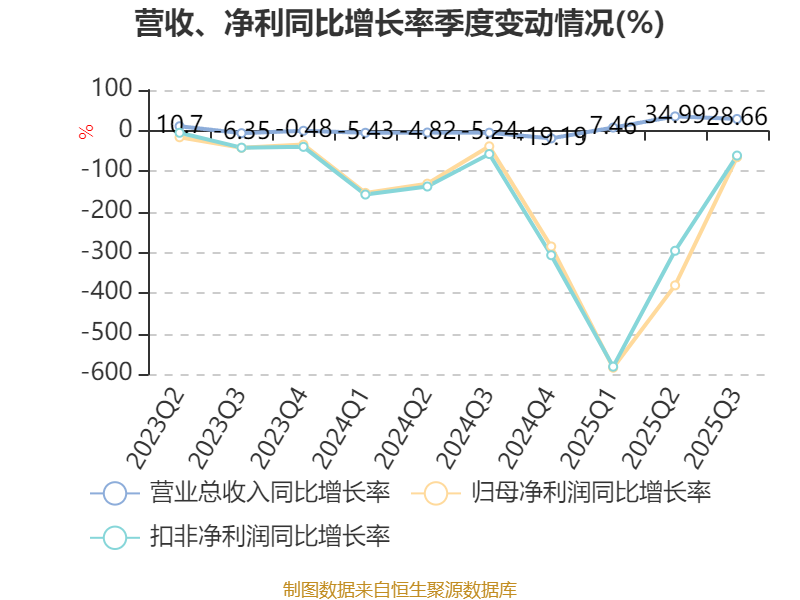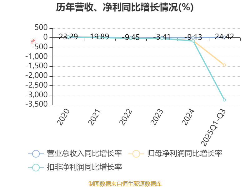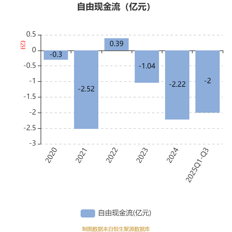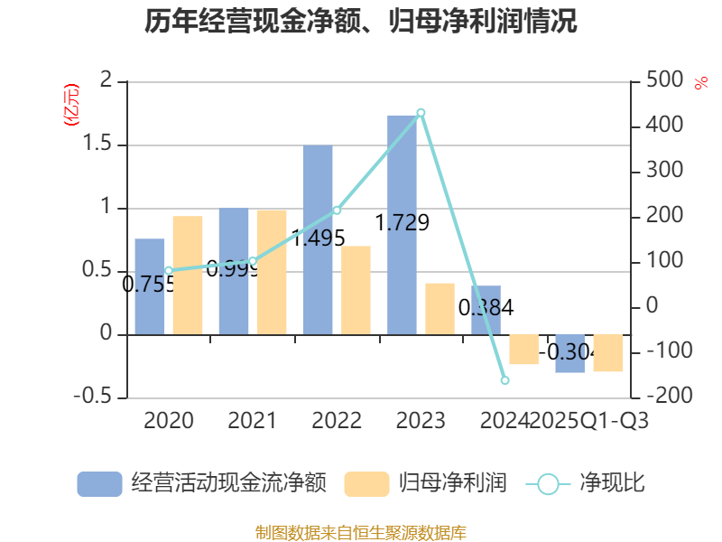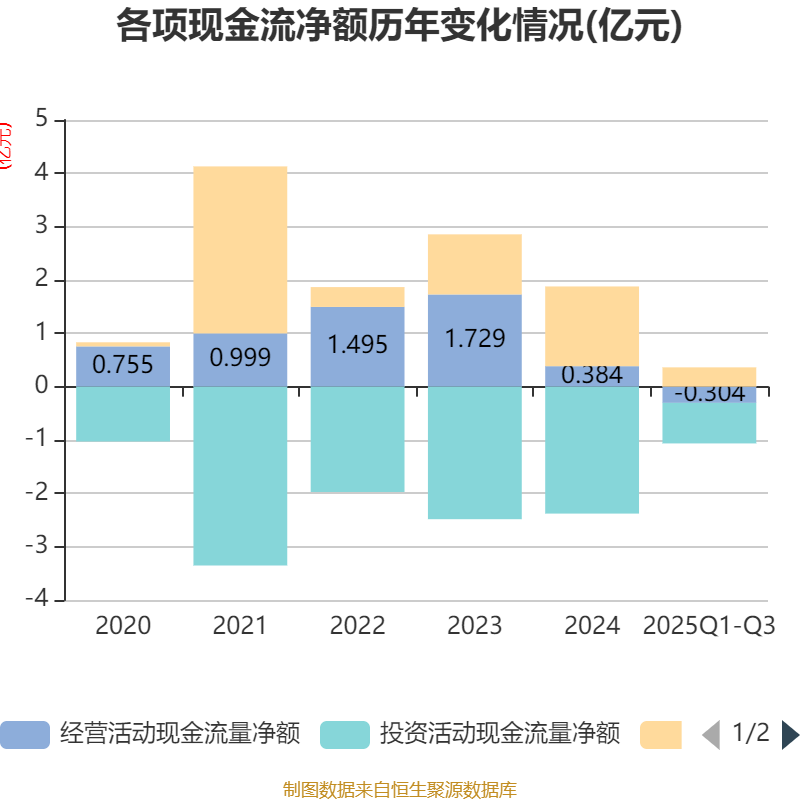 2025年前三季度,公司经营活动现金流净额为-3041.69万元,同比减少5131.26万元;筹资活动现金流净额3624.15万元,同比减少9395.14万元;投资活动现金流净额-7600.9万元,上年同期为-1.98亿元。